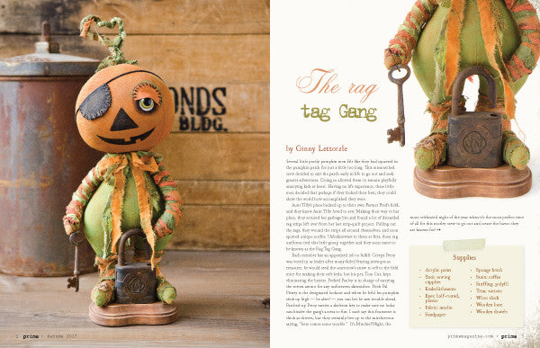 Welcome to the wild and whimsical world of Prims, the best full-color magazine featuring interpretations of primitive art. This highly anticipated Autumn issue is filled with Halloween and Christmas inspired dolls to get you even more excited for the holidays.