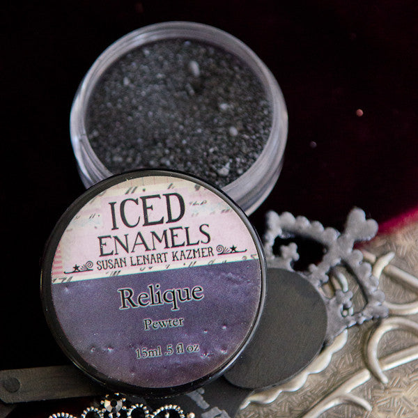 Paint top of crown with Relique medium, sprinkle with Pewter powder, and set with a heat gun.