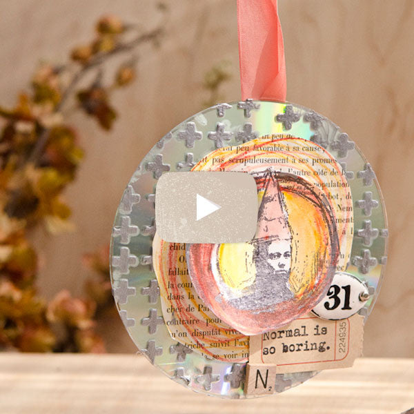 See the time-lapse video to see how we created these CD suncatchers with Dina Wakley’s stamps and Scribble Sticks.