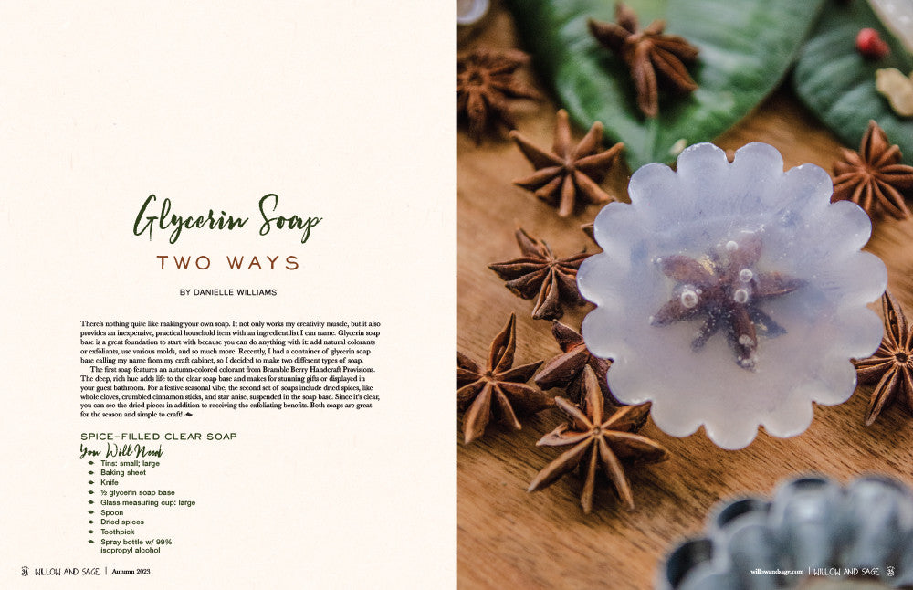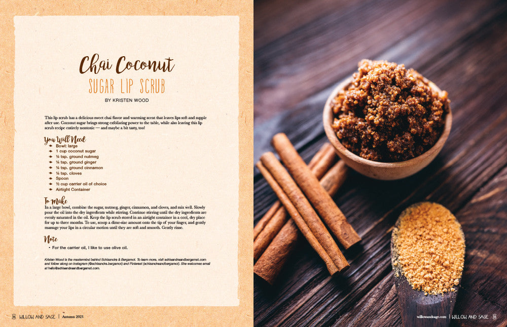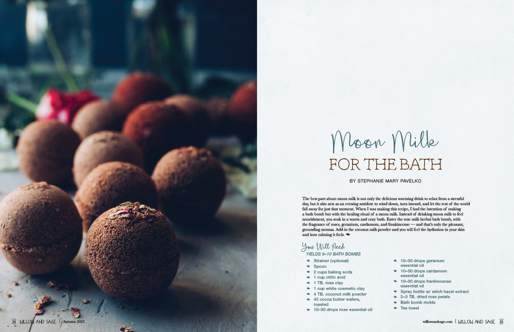 Each issue of Willow and Sage magazine features 144 pages of creative ideas for perking up your senses and infusing natural, homemade recipes into your bath and body routine. You won't want to miss our newest installment that's filled with warming scents and skin-care solutions for autumn and beyond.