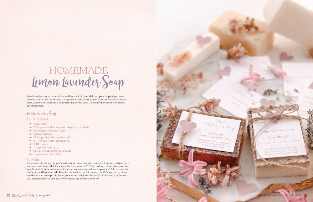 This spring, reveal your most radiant self by infusing natural, homemade recipes into your bath and body routine. Each issue of Willow and Sage Magazine features 144 pages of creative ideas for perking up your senses, and shines a spotlight on many beneficial ingredients for you to try.