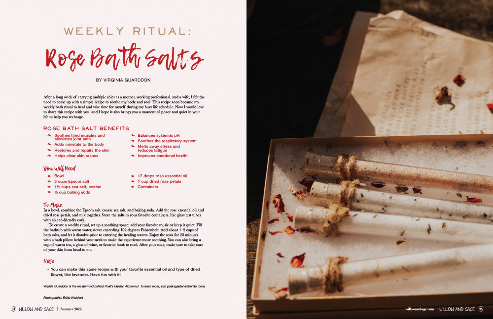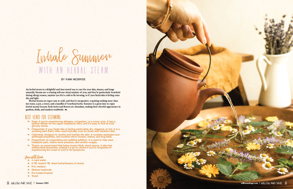 Each issue of Willow and Sage magazine features 144 pages of creative ideas for perking up your senses and infusing natural, homemade recipes into your bath and body routine.